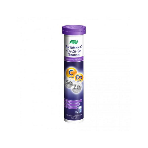 Лимонная кислота и гидрокарбонат натрия (регуляторы кислотности), аскорбиновая кислота, сорбит (носитель), мальтодекстрин, ароматизатор натуральный «Апельсин», поливинилпирролидон (носитель), цинка сульфат, полиэтиленгликоль (носитель), сукралоза (подсластитель), холекальциферол, рибофлавин 5-фосфат натрия (краситель), полидиметилсилоксан (пеногаситель), селексен.