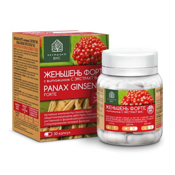 Женьшень форте с витамином с экстракт вис, капсулы x30